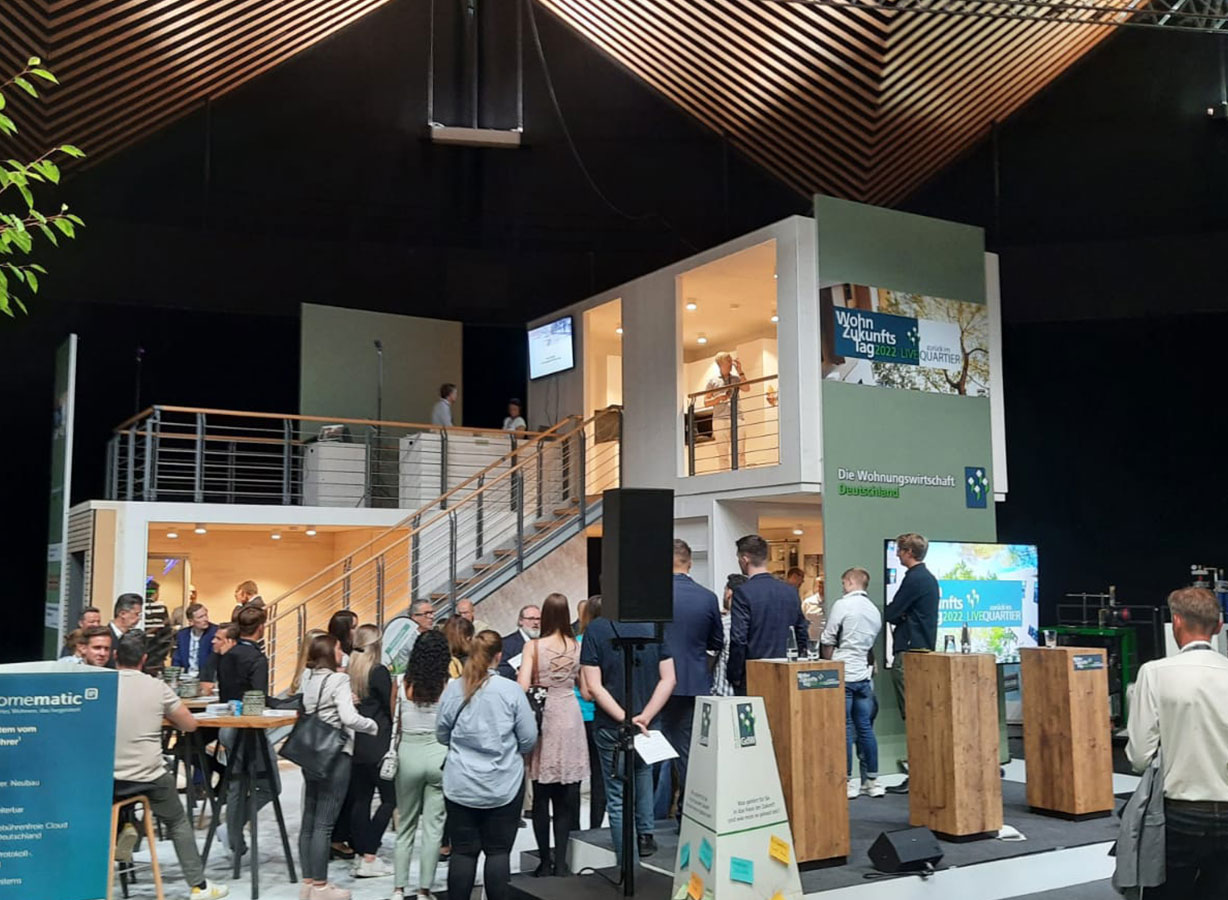 Nach zwei Digital-Jahren hat der GdW beim WohnZukunftsTag 2022 im Tempodrom in Berlin das Haus der Zukunft präsentiert.